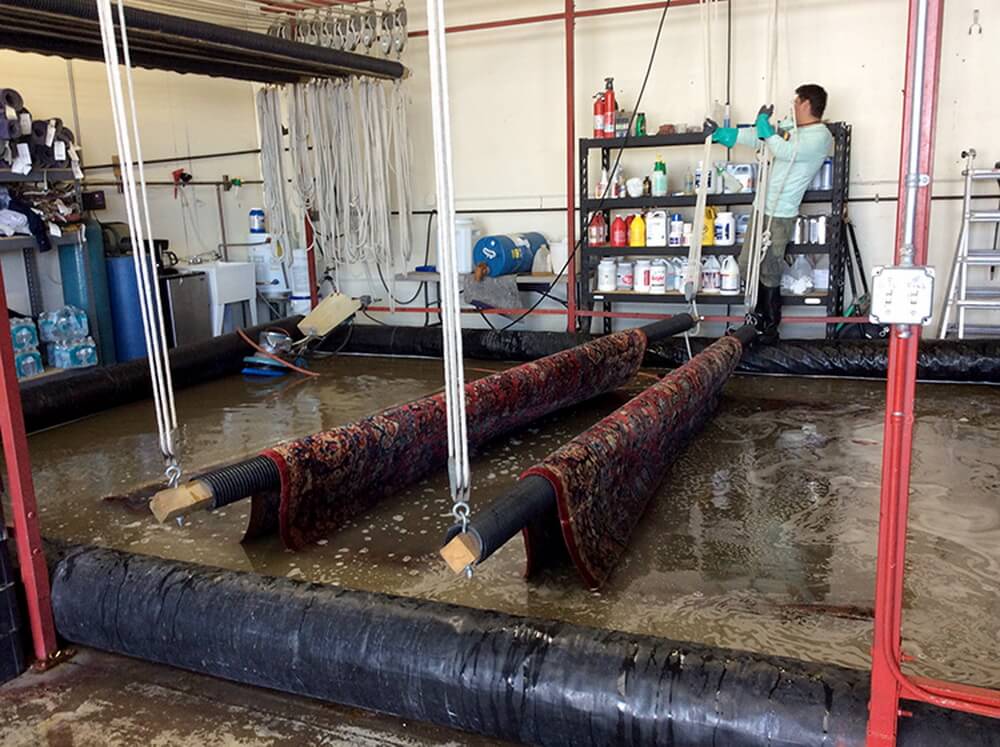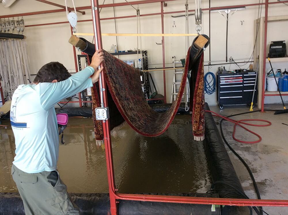 We utilize gravity, controlled air circulation, and mild heat to dry your rug effectively.