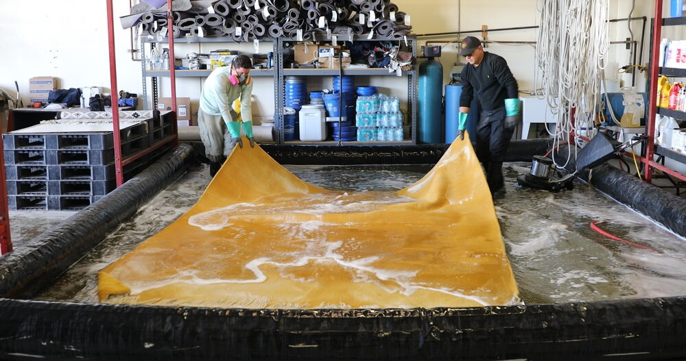 Our approach combines traditional craftsmanship with advanced technology. We use patented tools and equipment specifically designed for oriental rugs. Our unique system leverages air, water, detergent, and agitation to provide a deep, structural wash for both natural and synthetic fibers. Our 16-foot wide, 20-foot long wash pit features four separate inflatable chambers, allowing us to wash rugs in 500 gallons of fresh, soft water. The special diamond wash grid elevates rugs, preventing contact with separated debris. This system offers greater flexibility for rolling, flexing, and purging soil from your rug.